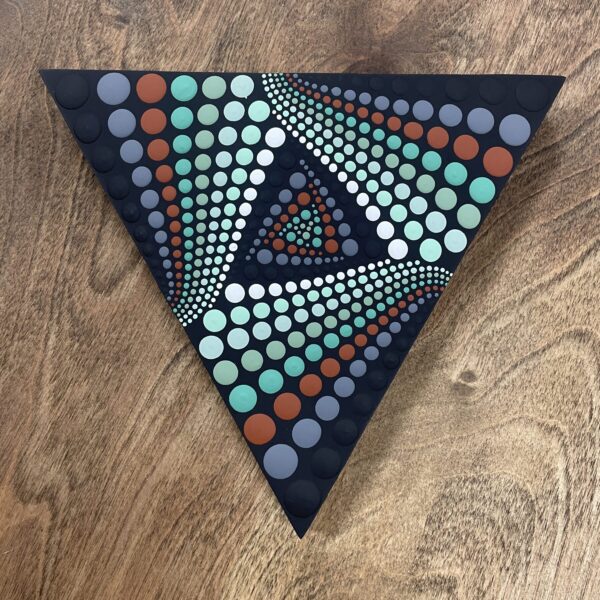 Acrylic and resin on wood, it has a glossy finish underneath the dots.